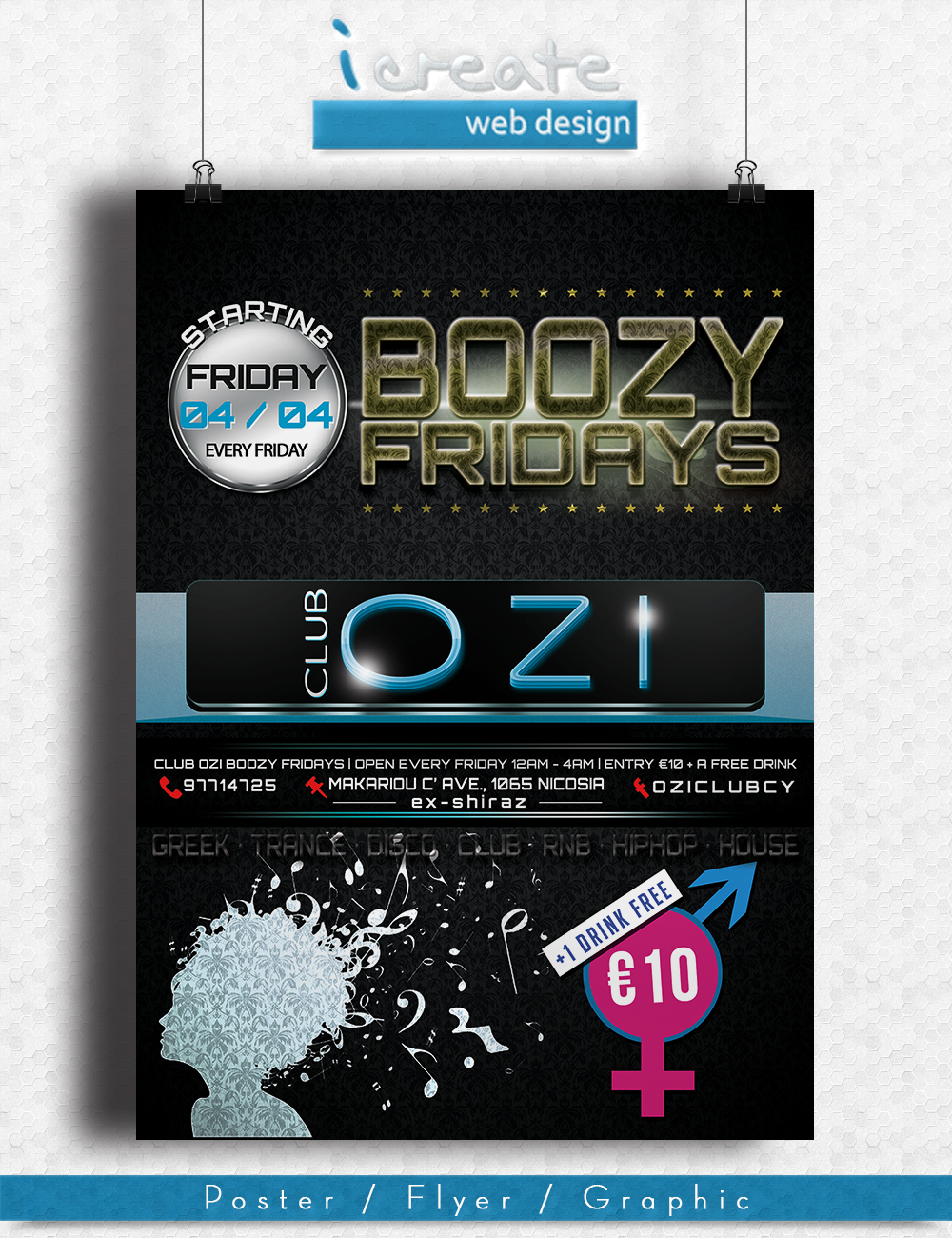 iCreate Web Design | Flyer & Poster Design | OZI Night Club | Boozy Fridays